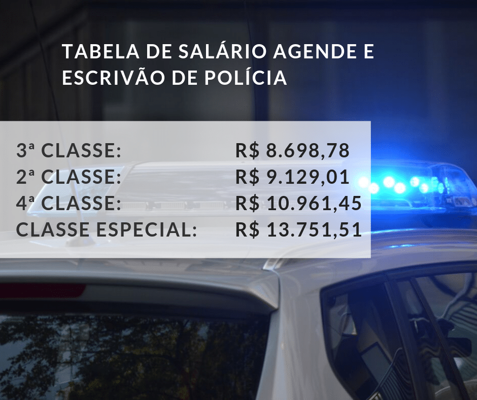 Os salários para os profissionais da área são bastante altos, uma carreira de agente, ou escrivão de polícia chega a R$ 13 mil. Todavia, esse valor está de acordo com a classe, que conforme o tempo chega a valores mais altos.